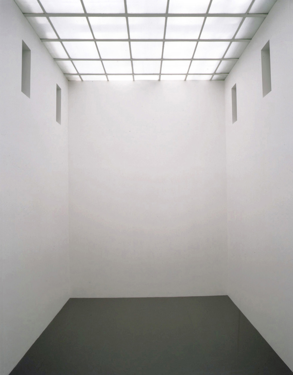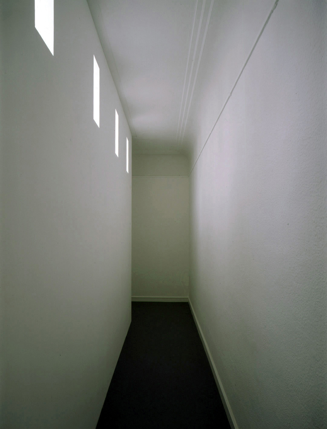 Einer der Oberlichtsäle des Museums wird in der Form des Oberlichtes unterteilt, wodurch zwei Räume entstehen: der Innenraum des Oberlichts und der ausgesparte Restraum; gleichzeitig wird der Durchgang durch die Ausstellungsräume unterbrochen. Die Räume können jetzt nur von zwei Seiten, – am Anfang und am Ende des Ausstellungsrundgangs –,betreten werden. Von der Haupthalle aus tritt man zuerst in einen Raum, dessen weiße Wände direkt mit dem Glas des Oberlichts abschließen. In den Seitenwänden befinden sich hoch oben Öffnungen, die uneinsehbar ins Dunkel führen. Geht man nun zurück und durch die anderen Räume der Kunsthalle hindurch, trifft man am Ende des Rundgangs wieder auf einen weißen Raum: er ist gangartig schmal, rechts und links symmetrisch und wird von hoch obenliegenden, nun hellen Öffnungen, beleuchtet. Er endet brüsk auf der Rückseite des Eingangs, der in den vorigen Raum hineinführte. Man befindet sich hinter den Wänden des ersten Raumes und erkennt an den hochliegenden Fenstern die vormals ins Dunkle führenden Öffnungen, die nun diesen ausgesparten Raum beleuchten.