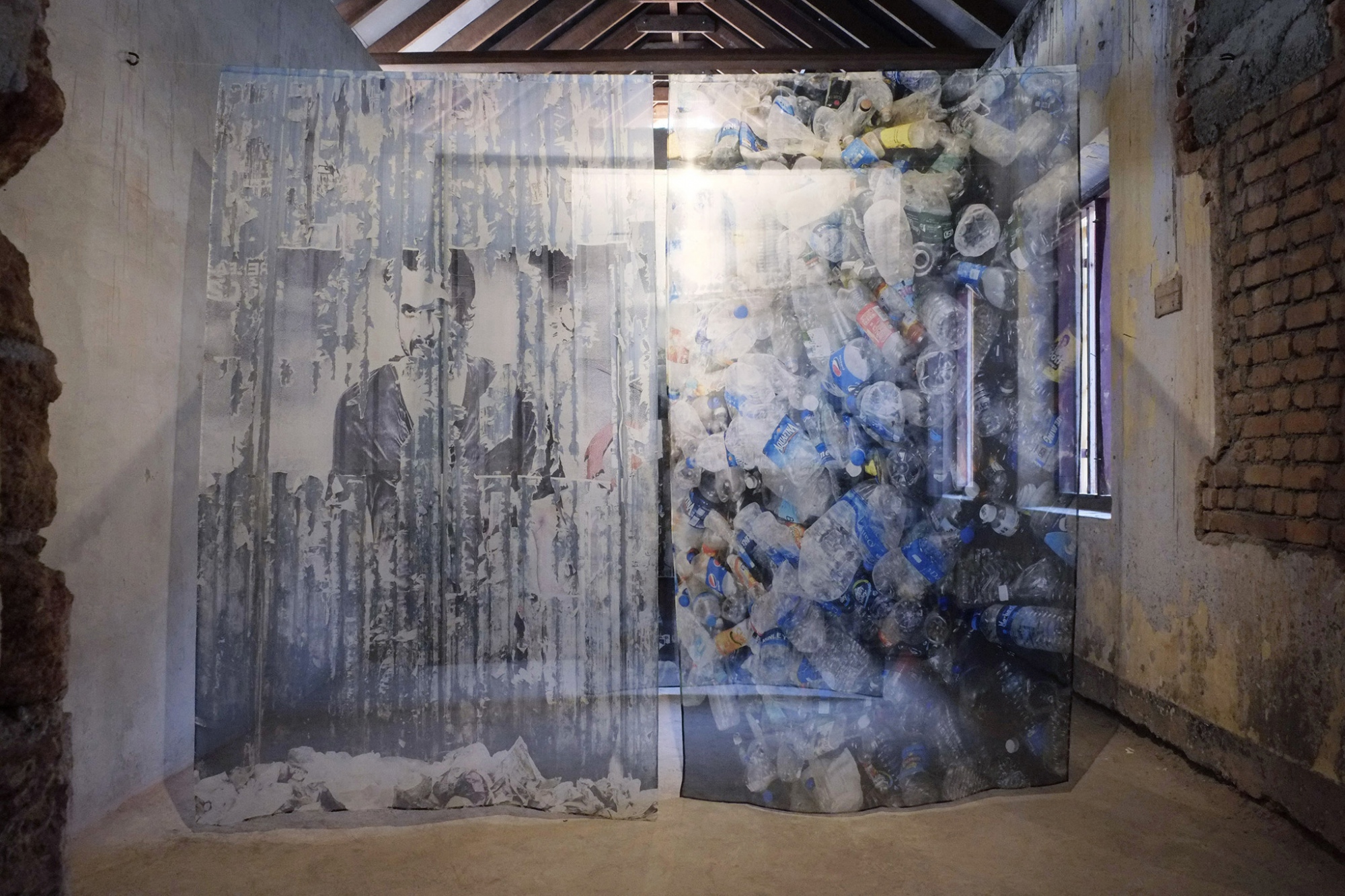 Hier interagieren nicht nur die übereinanderliegenden Bilder und bereichern oder widersprechen sich gegenseitig, während man durch die Installation geht, sondern hier teilen und öffnen sich wie Erfahrungsebenen auch Schichten von Vorhängen für die Betrachter: auf eine durch und durch seidene Landschaft, eingebettet in große Werbeanzeigen, bizarre Immobilieninterventionen, gigantische Wasserprobleme und Wohnungsbaukonstruktionen, die auf ein menschliches Maß herunterskaliert sind. Die Betrachter verschmelzen mit den Bildern, überschneiden sich mit ihrem Kontext und flechten sich in ihn ein, und indem sie durch die Bilder hindurchgehen, werden sie zum Teil der Szenerie.