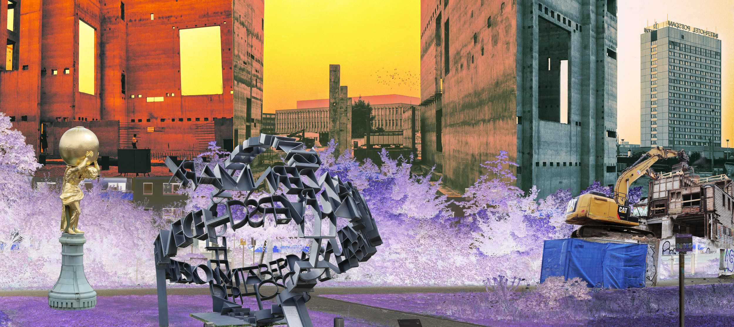 In Sabine Hornig’s “Interspace of Utopian Consciousness”, scenes of demolition from the reversed development of the modern city mix with historical moments in which public buildings became a silent stage for democratic beginnings. The identity of our city itself becomes recognizable as an amalgamated, artificial entity – in which we decide anew each day how we want to encounter each other and whether we still want to remind ourselves of Modernism’s promise of equality.