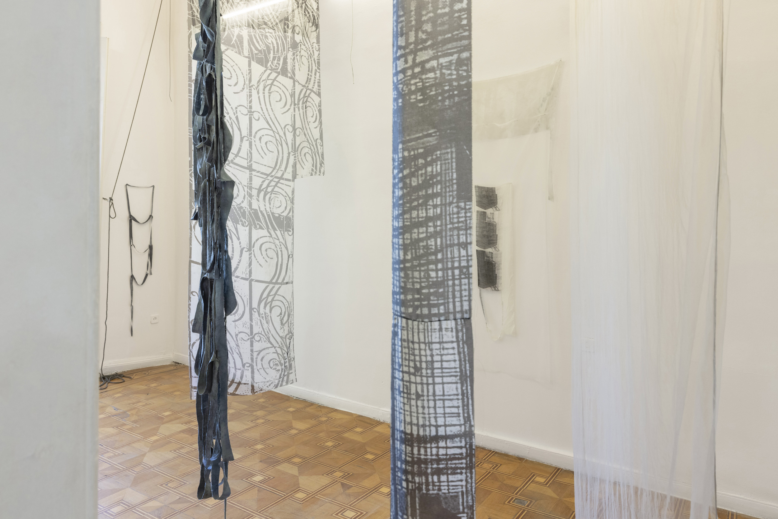 Her installation, titled Patterns of (In)security, which also serves as the exhibition's namesake, is characterized by its delicate and intricate structure. It features ropes extended across the room and patterns of window grills printed on fabrics that evoke a sense of instability and self-exposure. Instead of providing protection and a feeling of security or empowerment, these elements become delicate and pliable, akin to a net stretching into space. Simultaneously, each component works to anchor and define itself within the space. In this context, temporality emerges as a lasting condition that engenders a sense of precariousness and fragility, while also permitting creativity and adaptability.