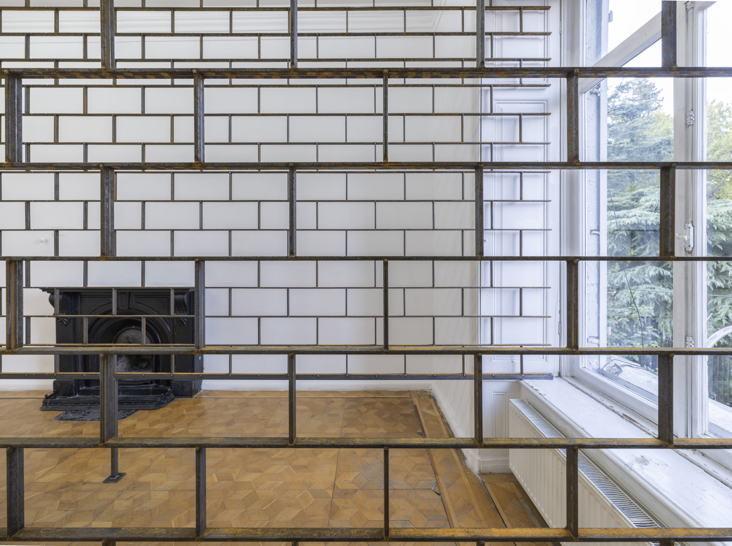 For the Kunsthalle Tbilisi exhibition, Hornig presents her sculptural work titled Inverted Window, drawing inspiration from the traditional window and balcony grilles commonly found in Tbilisi. These grilles extend the private space outward, bridging the realms of semi-public and semi-transparent domains. The installation itself encompasses an entire window, where the shape of the window opening is brought inward as an elongated grille. This inverted form, akin to a retracted organ in the body, establishes a space within a space, evoking a compelling sense of paradox and introspection. The concept underlying the installation extends beyond the mere physical portrayal of a window grille. It serves as a reflection of the political strategy of distorting truths and manipulating boundaries to exert control. By drawing parallels to the recurring acceptance of political despotism and unchecked authority, Hornig brings attention to the fragile nature of social participation and the potential danger of paradoxical thinking.