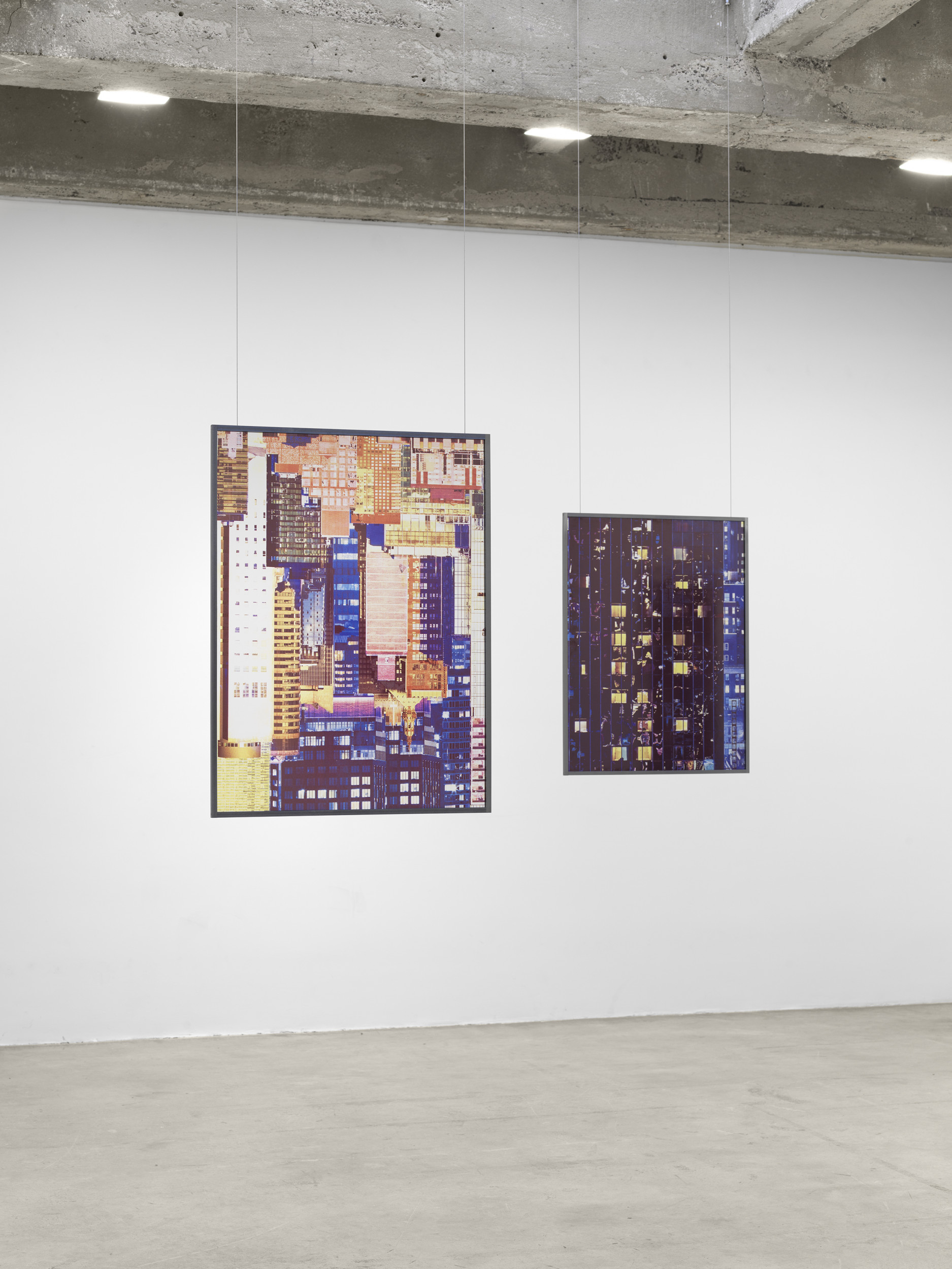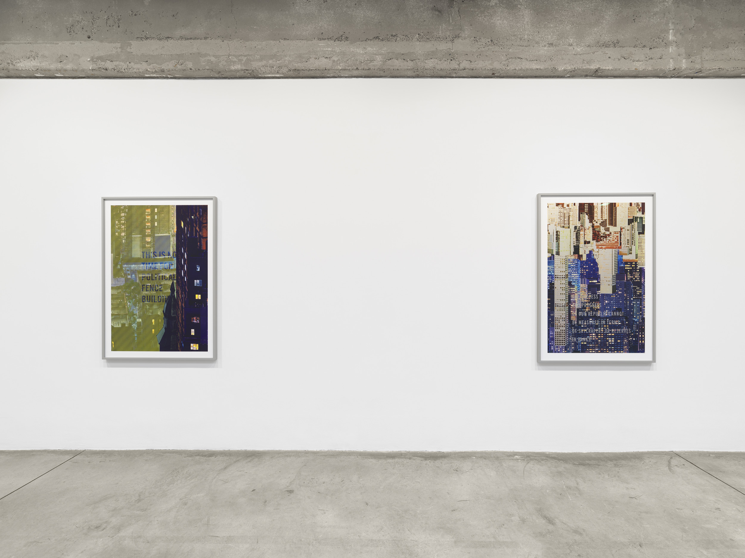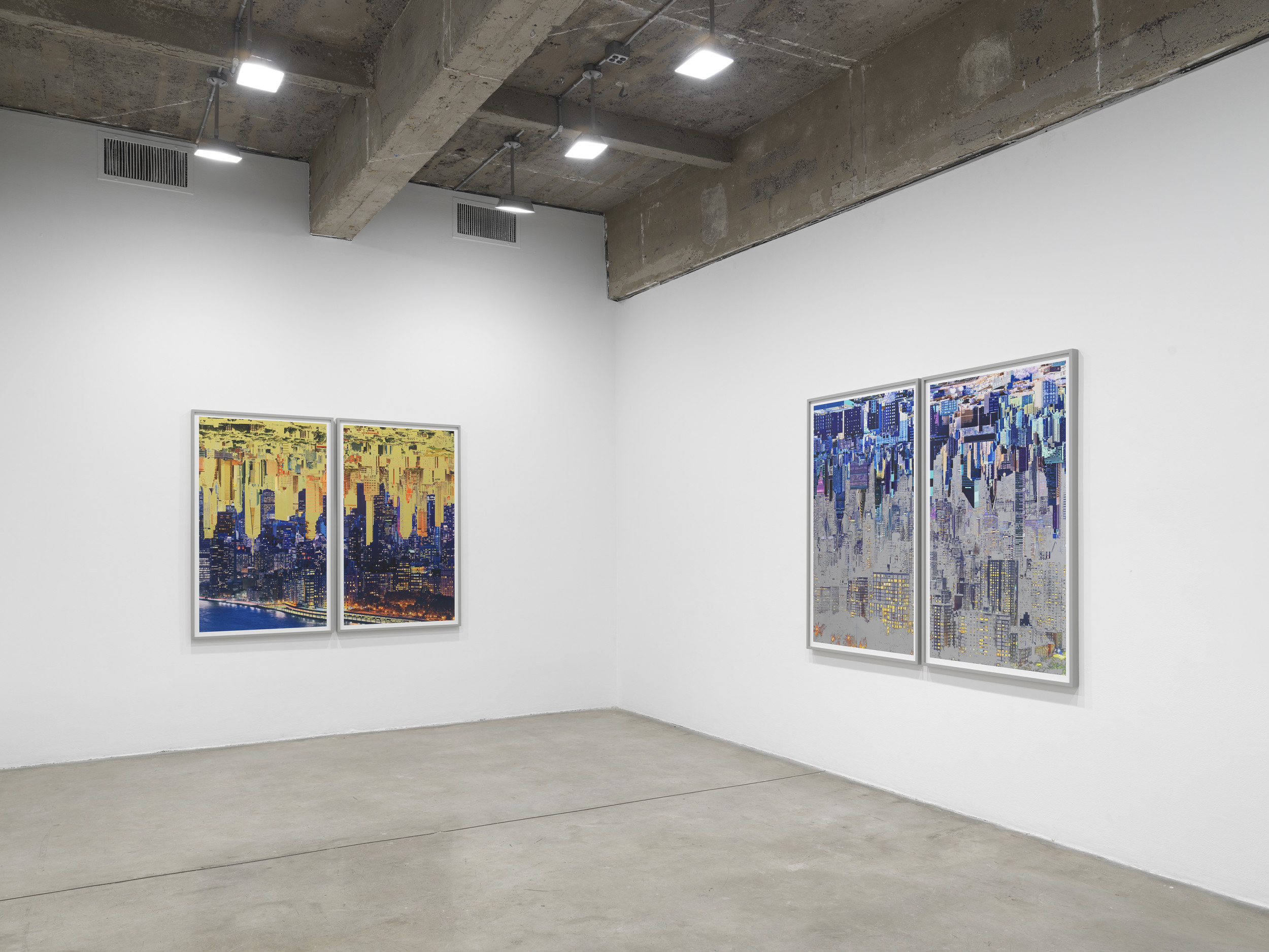 In Hornig’s images of the inverted city skyline, our habitual way of seeing is turned upside down, along with constructed orders and hierarchies. Day and Night Gold and Silver Negative depict the New York skyline interlocking with a distant night view. The daytime image of the skyscrapers brings out the recessed negative forms of the darker, nighttime images, and vice versa. Together these skylines create a sculptural perception of the city, where inside and outside as well as day and night interchange. Through overlapping perspectives as well as inversions of scale and dimension, Hornig questions the structures and histories that transform our collective experience.