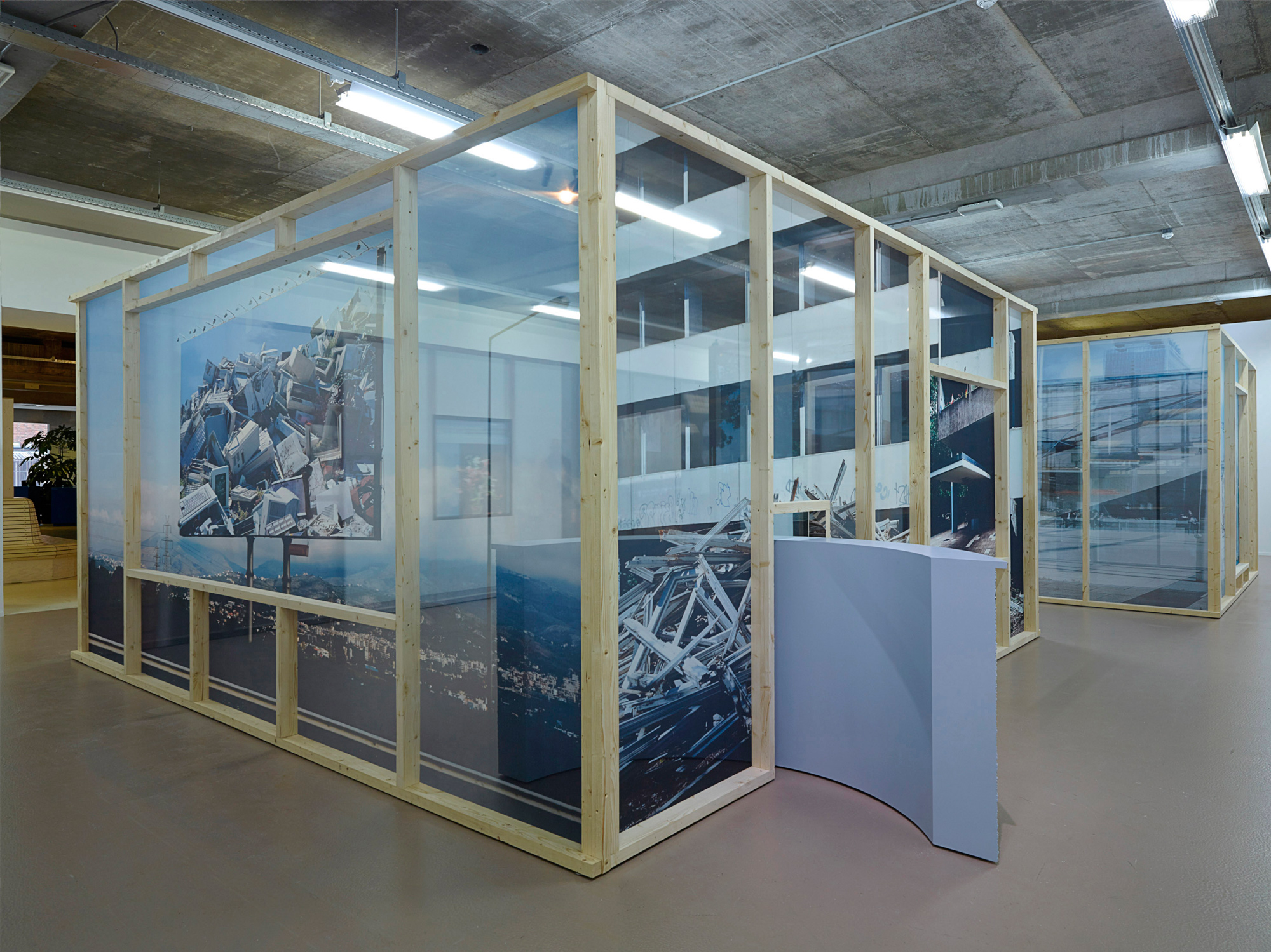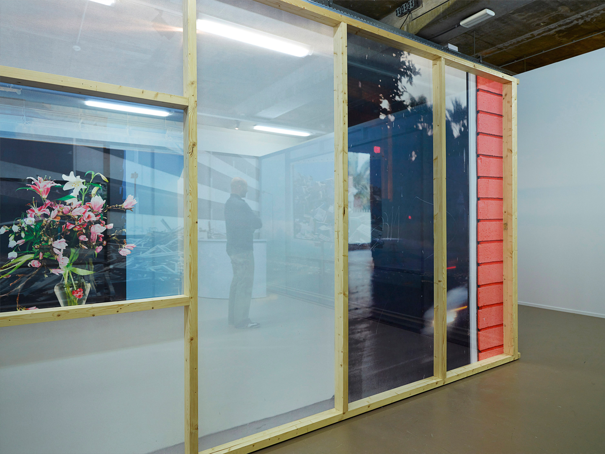 Die Transparenz der Arbeit verweist auf High-Tech-Architektur und flüchtige Medienbilder, aber auch – bildlich gesprochen – auf den Akt des Durchschauens: die allgegenwärtige Überlagerung von Informationen und Bildern, die kaum mehr als einzelne gesehen werden können. Hier kontrastieren sie mit dem physisch konstruierten Raum.