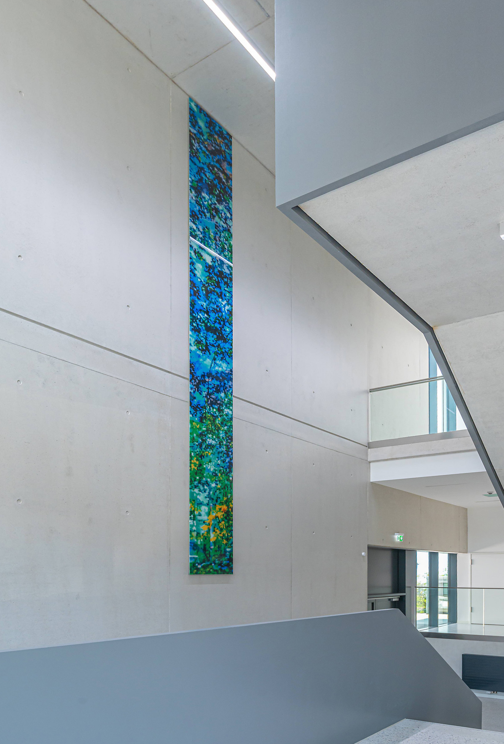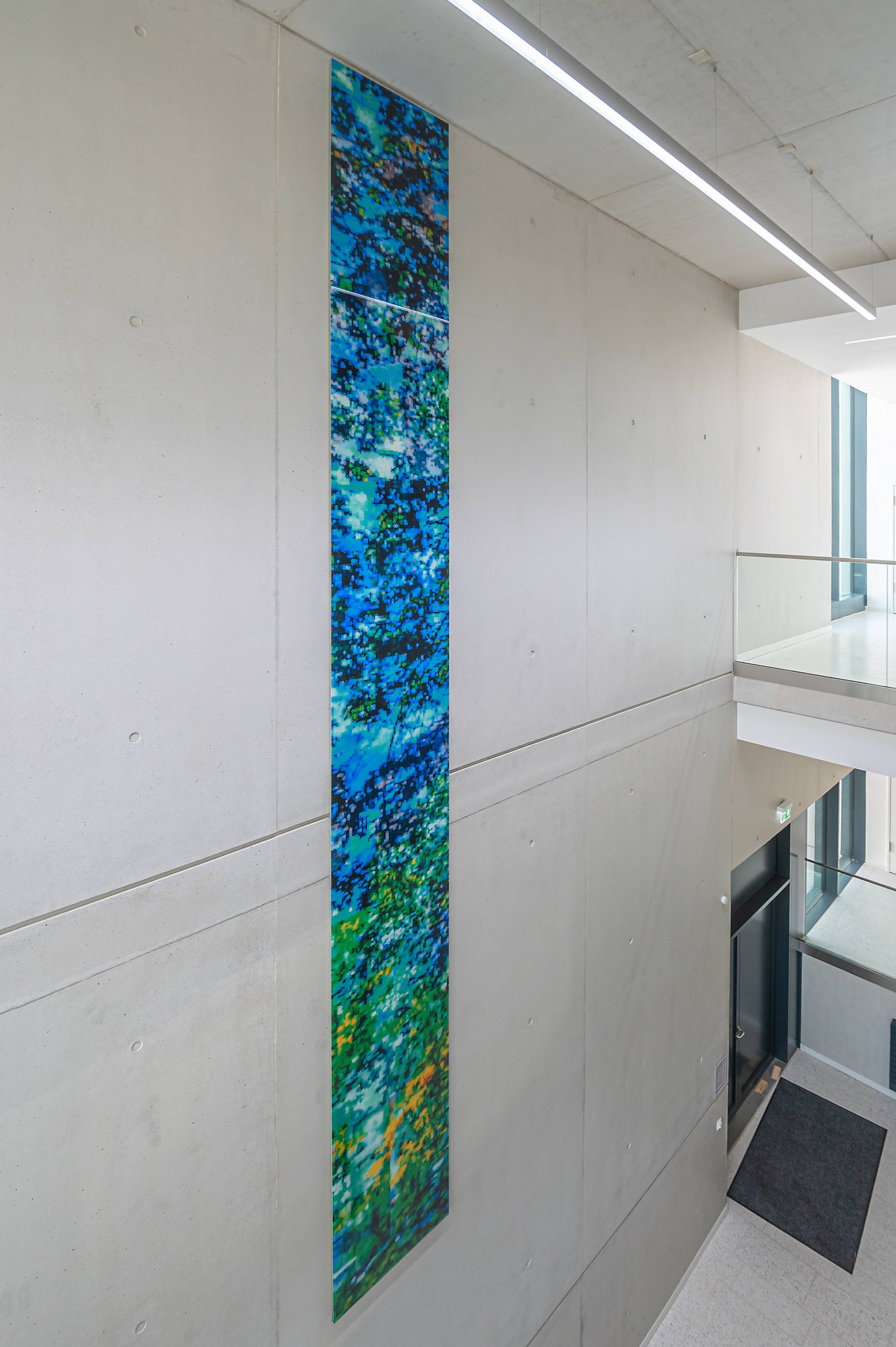 Die Arbeit Passage ist ein hochformatig bedrucktes Glasbild, das an der Wand in 3 m