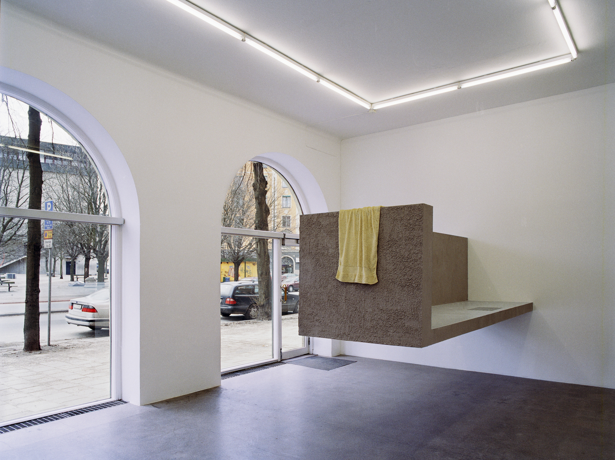 Twins, 1996, Gipskarton, Holzkonstruktion, Fassadenputz, Glas, Duraclear, Farbe, Gesamtmaß der Räume variabel, Fenstergröße: 170 x 270 x 40 cm