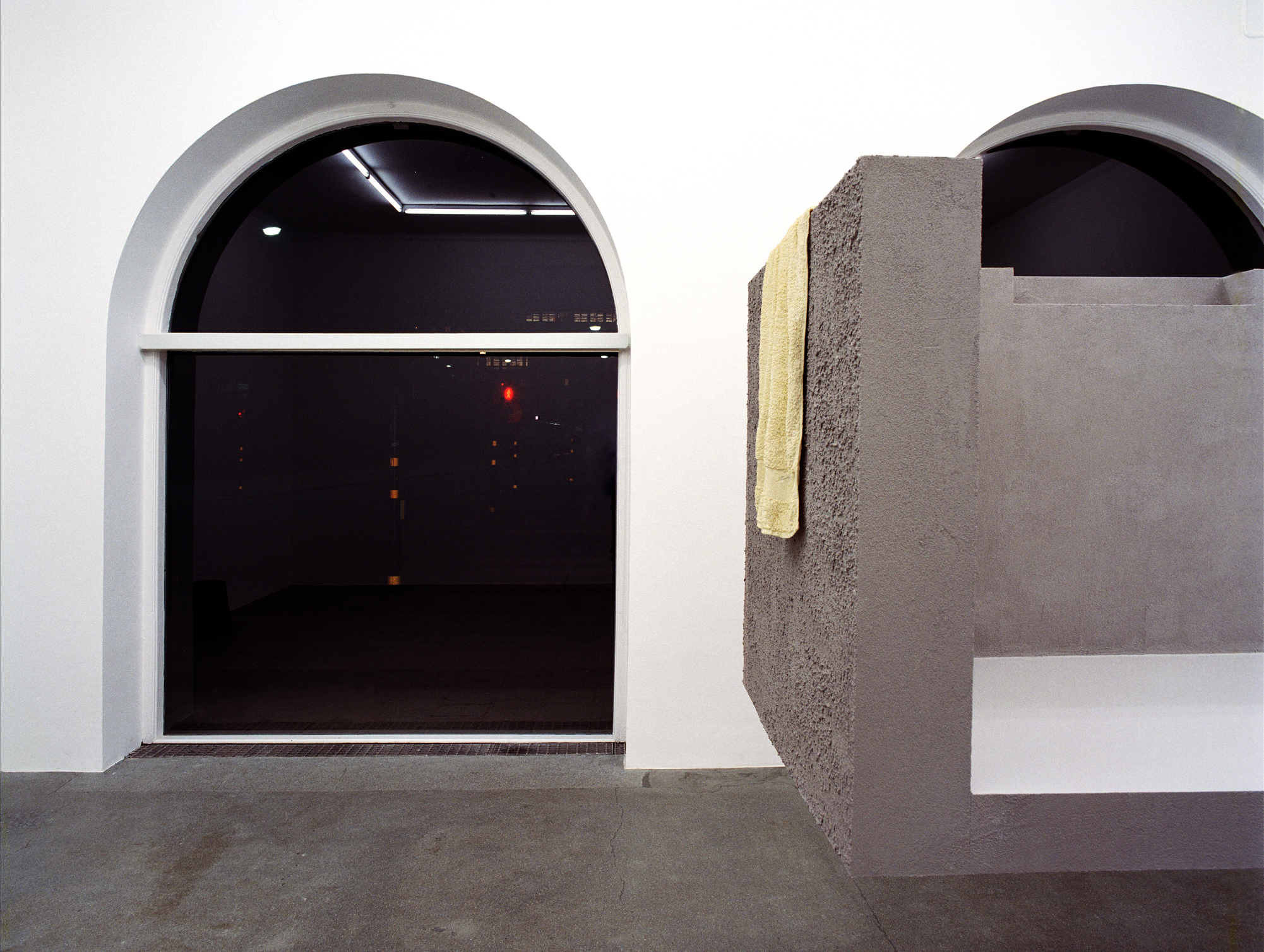 Fenster mit Vorhang, 2001, Gipskarton, Glas, Duraclear, Maße varibel