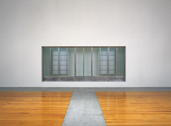Glastür, 2005, Aluminium, Glas, Holz, 170 x 403 x 100 cm, Edition: 2 + 2 AP