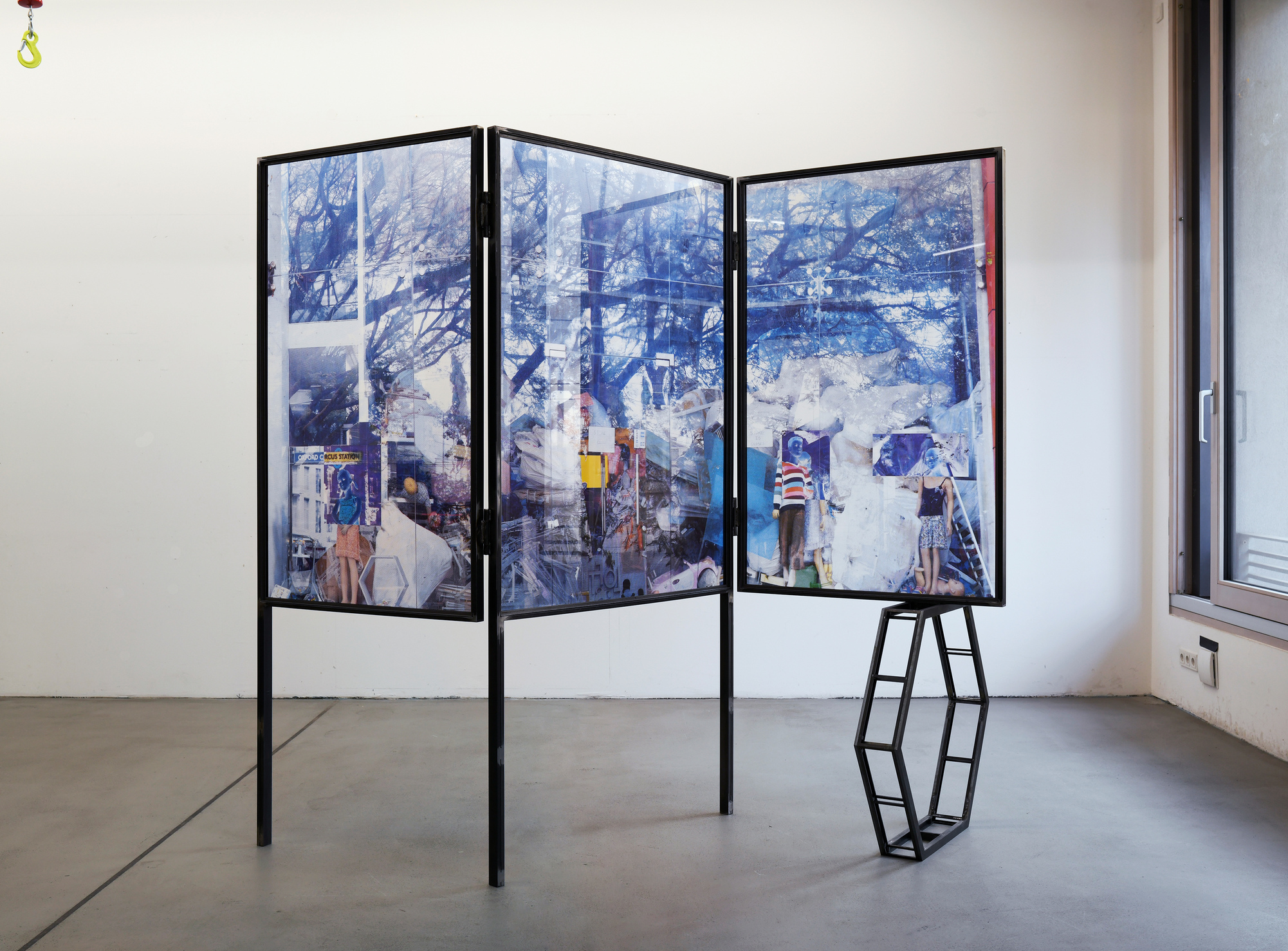 Stativ, 2016, Metall, Glas, Duraclear, 202 x 84,8 x 73 cm, Bild: 84,8 x 84,4 cm