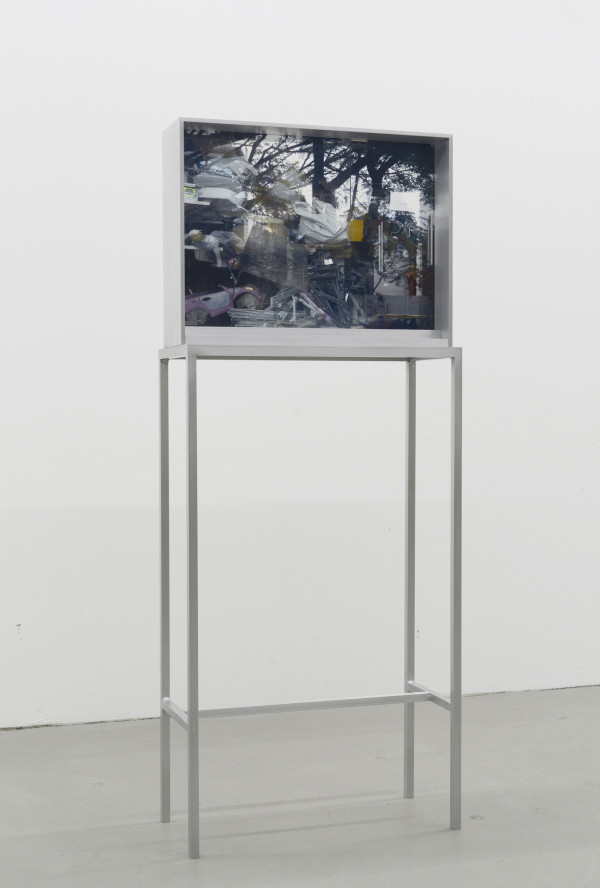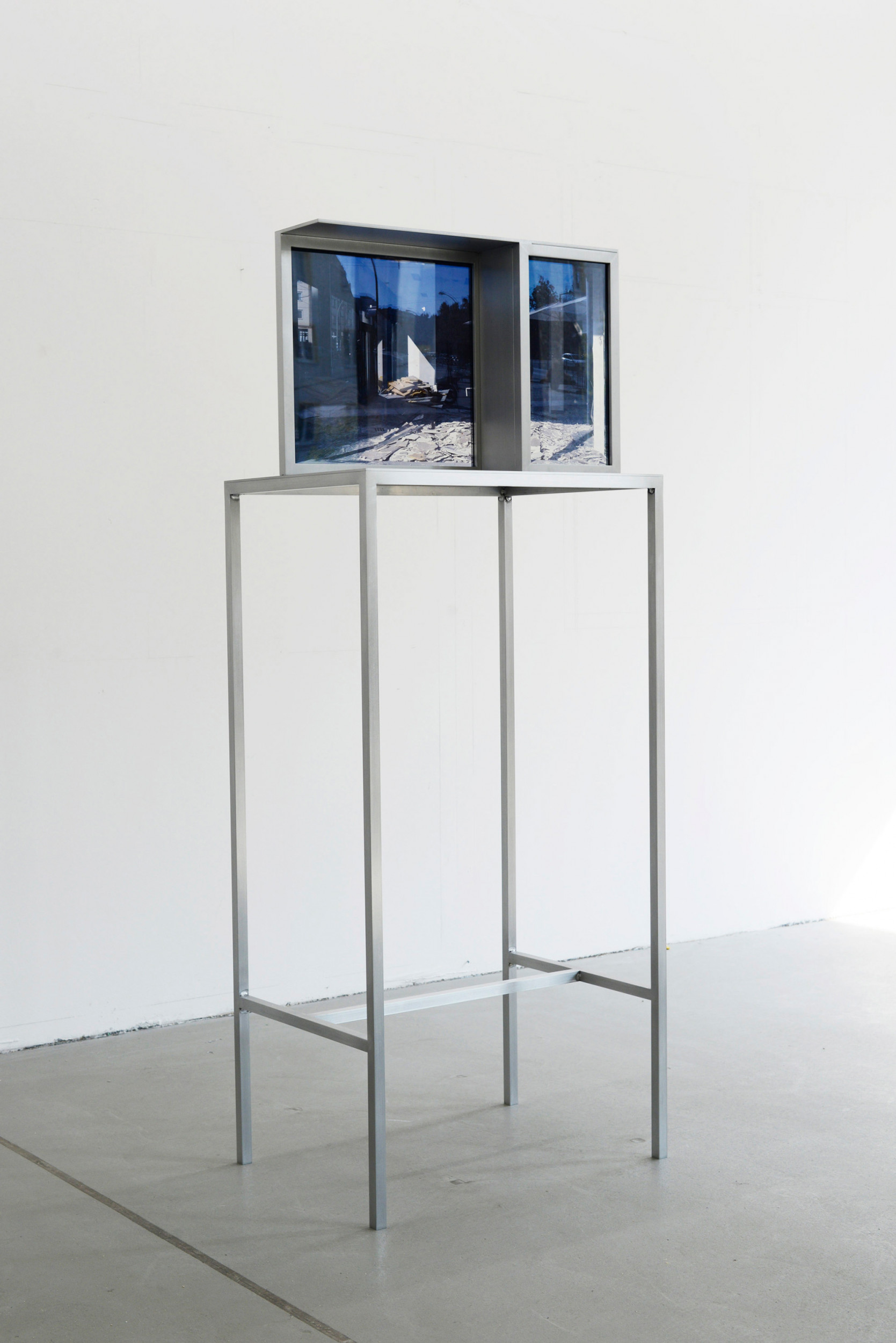 Laden (100 Feet Road), 2014, Aluminium, Plexiglas, Duraclear, 51 x 66,5 x 18 cm, inkl. Gestell: 165,5 x 66,5 x 30 cm