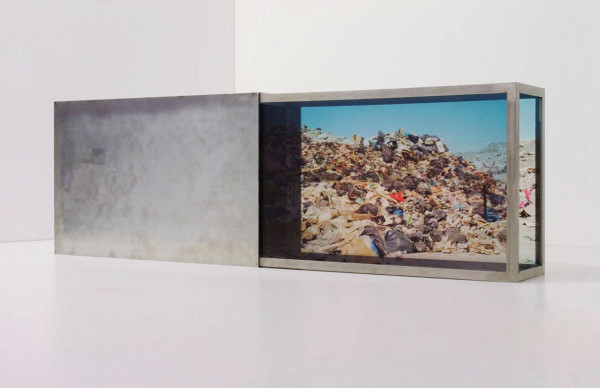 Landschaft III, 2007, Edelstahl, Glas, Duraclear, 20 x 63 x 10 cm