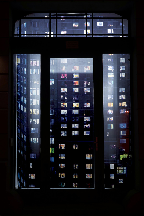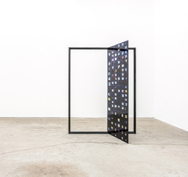 Nachtfenster II, 2021, Metall, Glas, keramischer Siebdruck, 158 x 90 x 201,5 cm, Glas (Bild): 90 x 200,5 cm, Edition: 2 + 1AP