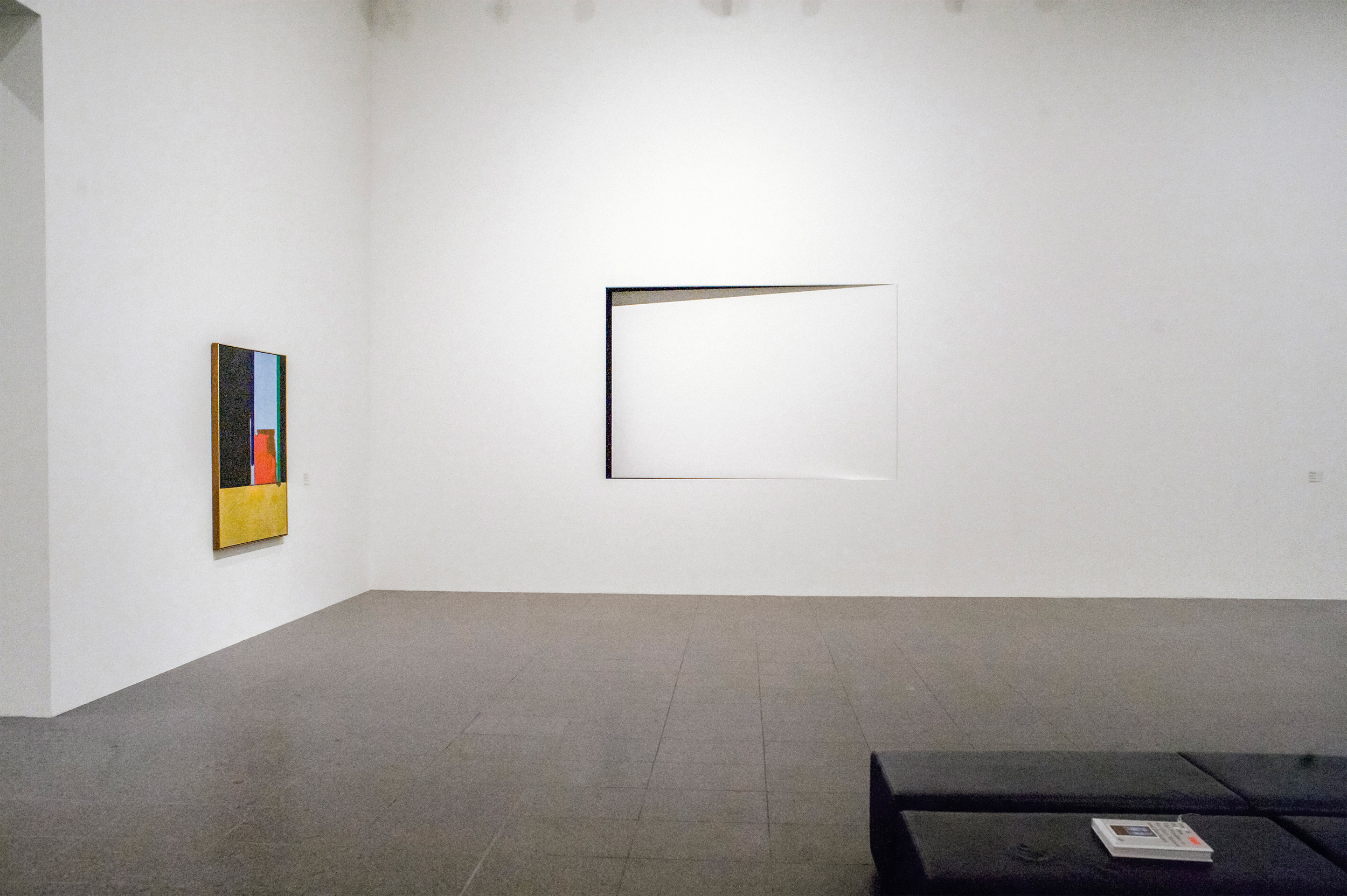 Vorhang 3, 2005, Gipskarton, Holz, Duraclear, Gesamtmaß variabel, Fenster: 210 x 165 x 30 cm
