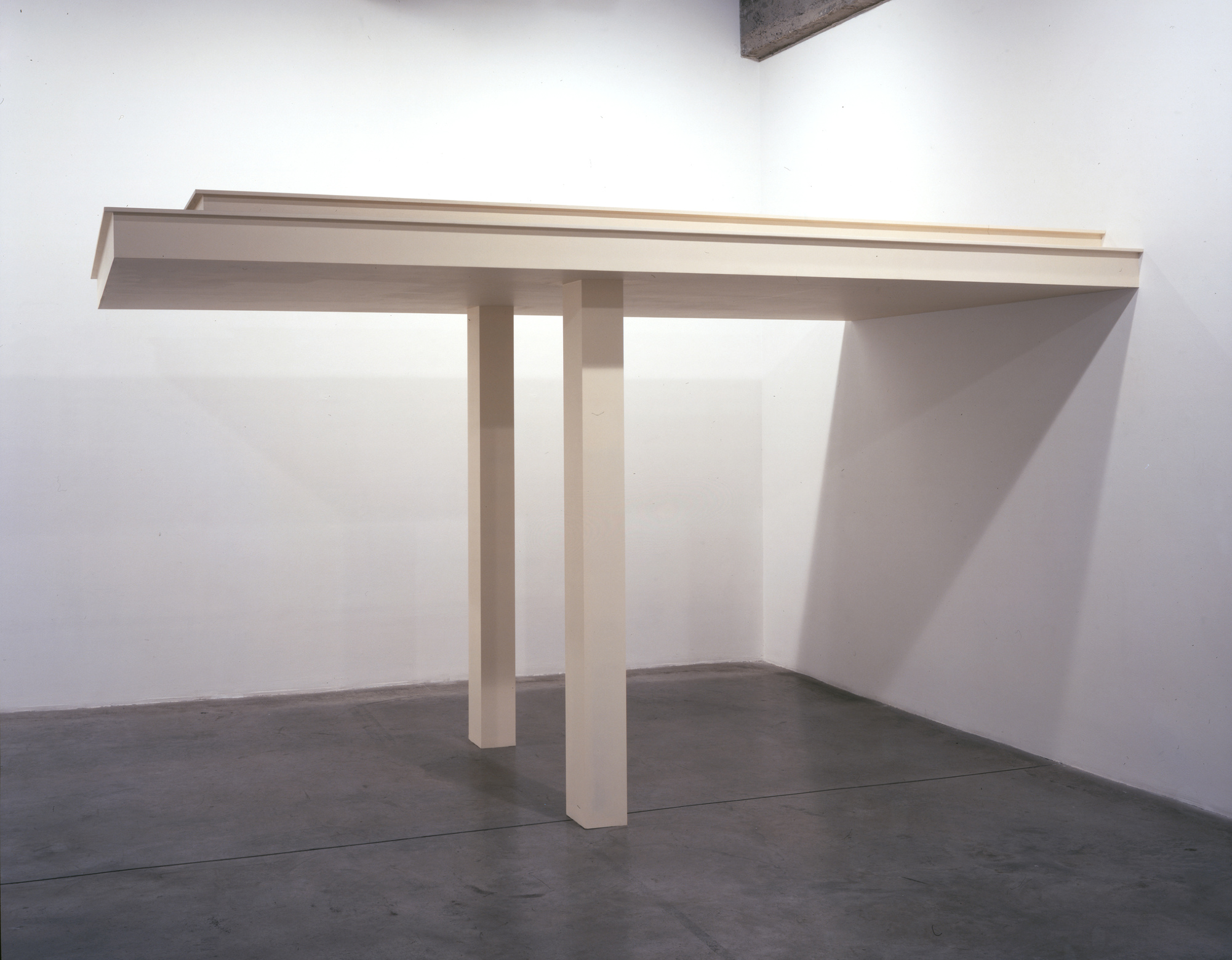 Selbstgespräch, 2009, lackiertes Holz, total: 180 x 225 x 176 cm, unten: 130 x 225 x 226 cm, oben: 50 x 50 x 25cm