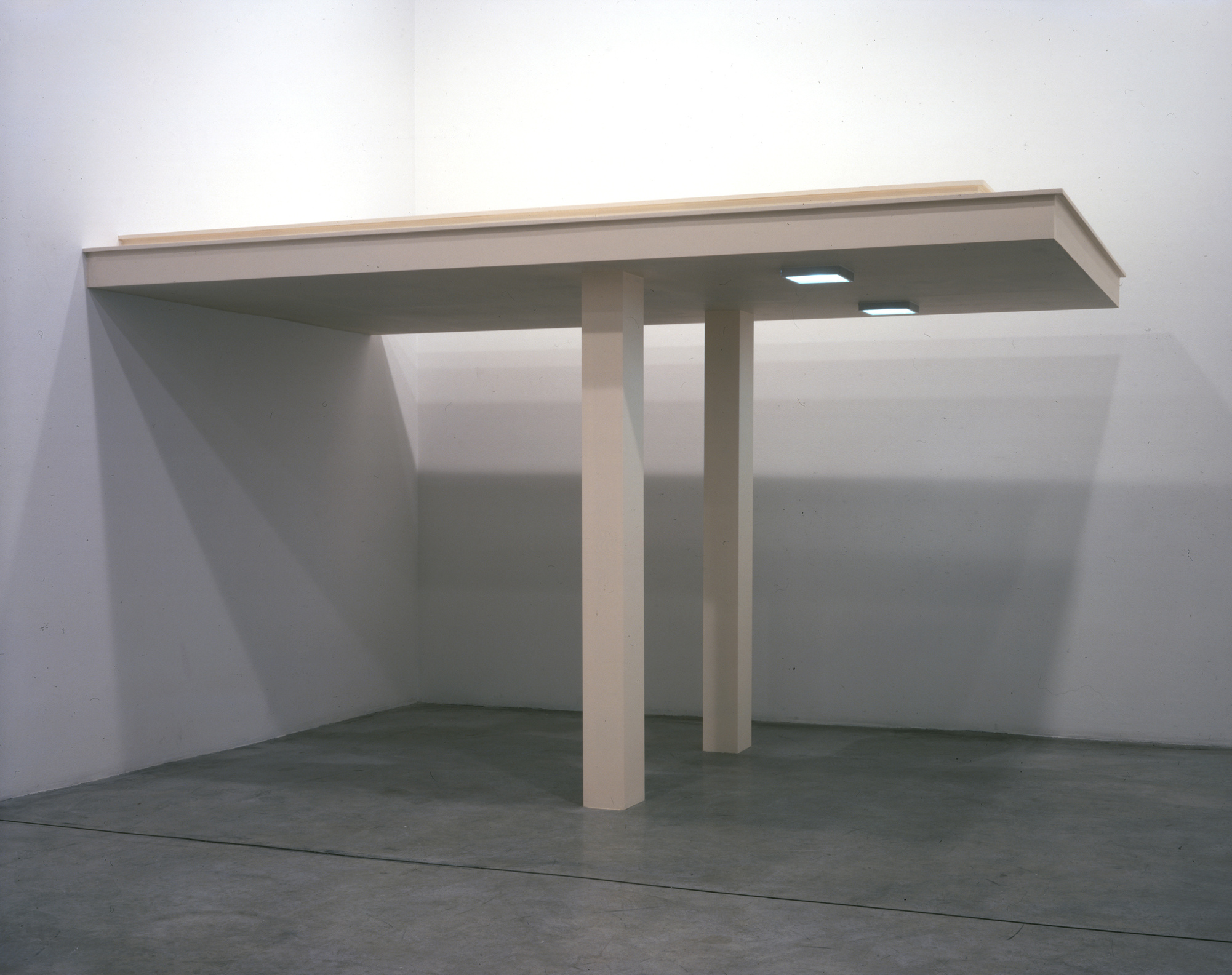 School - Small Roof, 2004, Holz, Farbe, Lampen, Aluminium, 170 x 272 x 244 cm