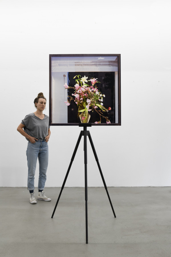 Stativ II, 2021, Metall, Glas, Duraclear, 194 x 85x 75 cm, Bild: 84,8 x 84,4 cm, Edition: 3 + 1AP