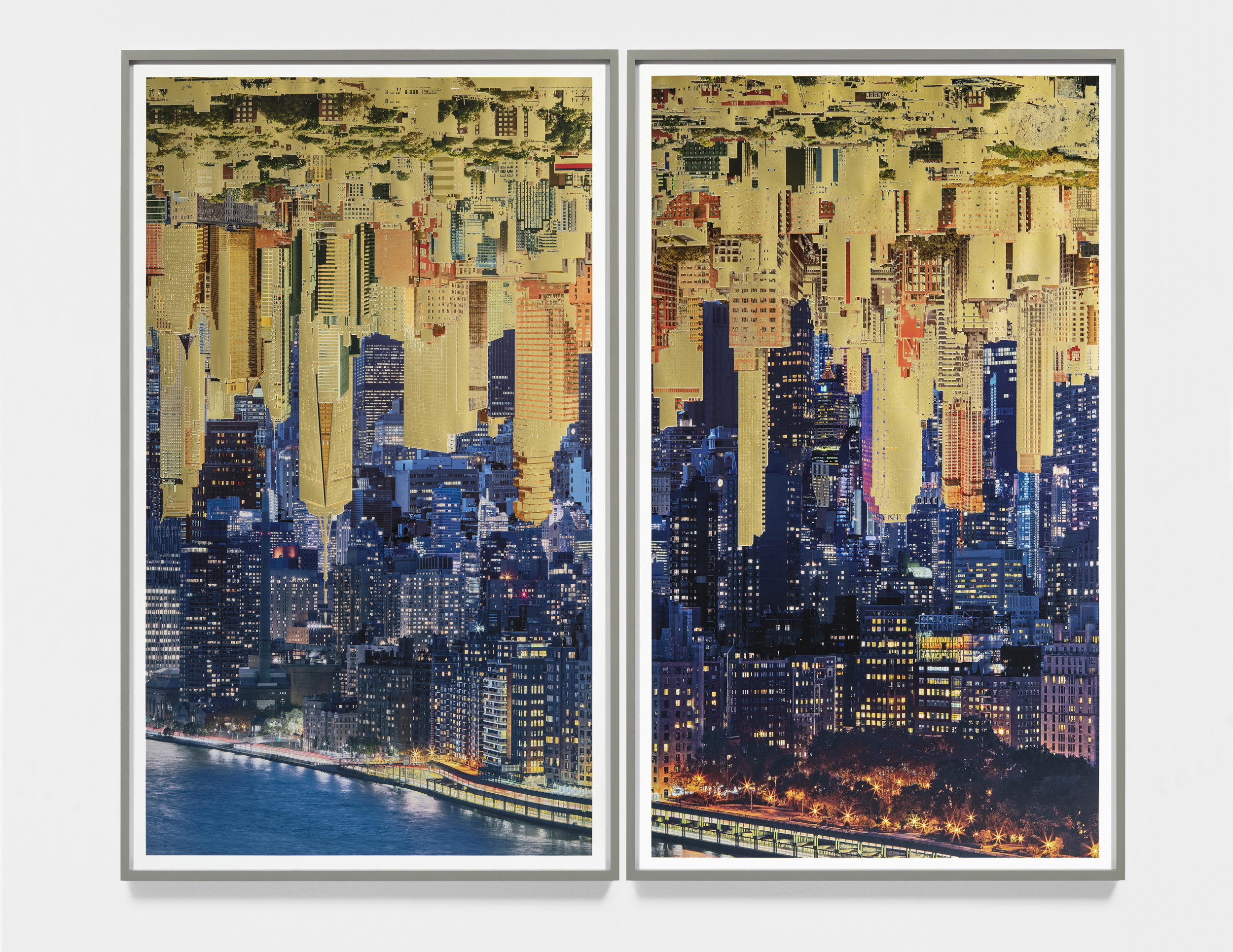 Day and Night Gold, 2022, Silkscreen print on pigment print on archival paper, 2 pieces of 155,7 x 93,4 cm, Edition: 5 + 2AP